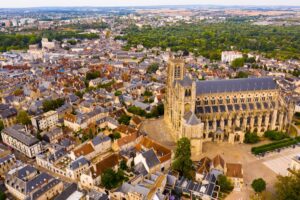 View,From,Drone,Of,Houses,And,Ancient,Roman,Catholic,Cathedral